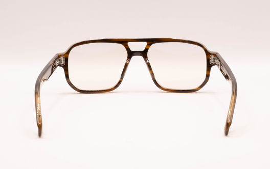 Handgefertigt mit innerem Drahtkern in den Bügeln, einem filigran gravierten Sterling-Silber-Detail und einem maßgeschneiderten 7-Barrel-Scharnier mit kleinen Silbernieten. Das Sterling-Silber-Dom-Logo setzt ein dezentes, edles Statement.