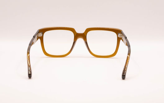 Gianduia ist ein transparentes Braun mit Tiefe. Der Farbton wirkt lebendig und verändert sich je nach Licht – mal heller und durchscheinender, mal satter und intensiver. Das hochwertige Acetat bleibt sichtbar und verleiht der Fassung Charakter. Die Transparenz nimmt der markanten Form etwas Härte und bringt eine warme, moderne Ausstrahlung ins Gesicht. Die klaren Gläser unterstreichen die reduzierte, konsequente Gestaltung.