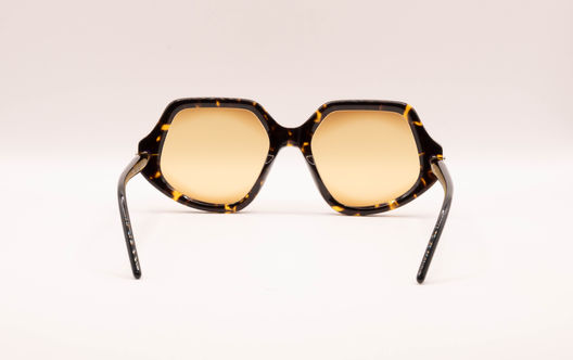 Die besondere Form der Front verleiht der P20 ihren unverwechselbaren Ausdruck – kraftvoll, aber harmonisch. Die Bügel greifen das Tortoise-Muster auf und werden durch einen dezenten schwarzen Glanz ergänzt, was dem Modell zusätzliche Eleganz verleiht. Abgerundet wird das Design durch braun-gelb verlaufende Gläser, die der Brille eine warme, weiche Gesamtwirkung geben und perfekt mit der Farbigkeit der Fassung harmonieren.
